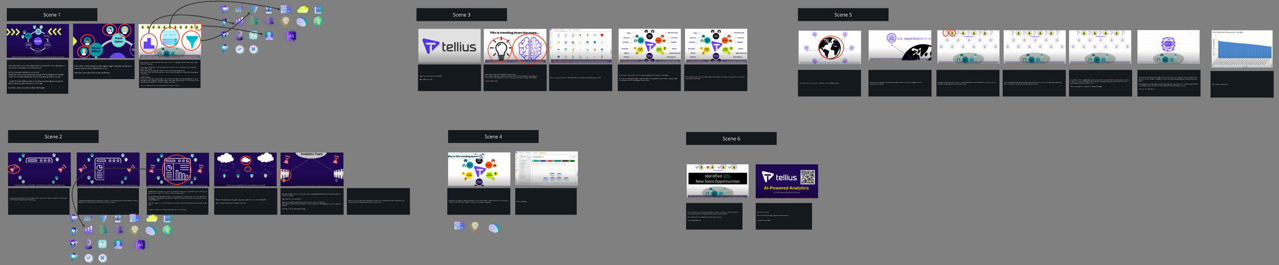 Wtih new graphics being implemented, a new request came from the client to update the story so that it may be more simplified. This required some parts of the original narration to be cut. This lead to a new storyboard (seen below) in which we used the platform Miro to help collaborate within the team to establish a new storyline and how to implement the new graphics.